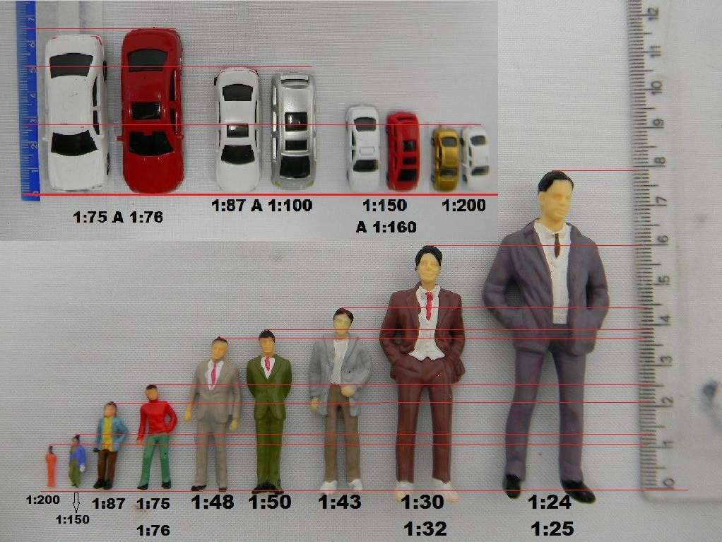 Para que fosse possível a reprodução e a boa visualização de detalhes que seriam sofríveis ou até impossíveis em modelos menores (escalas maiores), nasceram as escalas como 1:48 (homem = 1.½”), 1:32 (homem = 2.¼”), 1:24 (homem = 3”), 1:18 (homem = 4”) e muitas outras. Por outro lado, mesmo em detrimento de se detalhar fielmente um modelo, criou-se escalas para reproduzir objetos grandes, acima de 100’ de comprimento (30,48m), como a escala 1:144 (homem = .½”). Para reproduzir objetos muito grandes (embarcações, edificações e astronaves) criou-se escalas como 1:200, 1:350, 1:400, 1:700, 1:750, 1:1000, entre outras.
